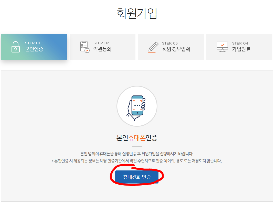 2. 휴대전화 인증 후 약관 동의하여 회원 정보를 입력해주시면 됩니다.