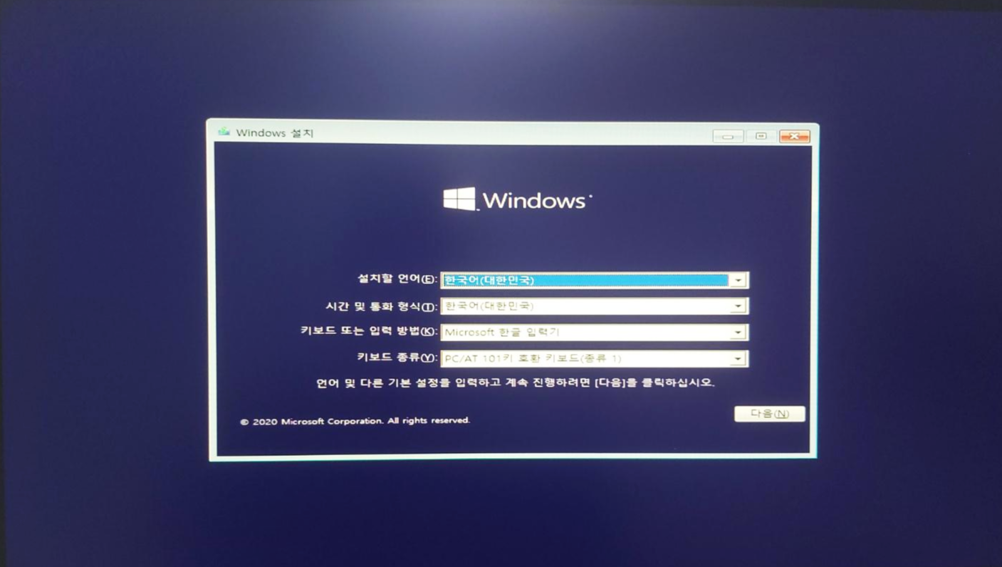 6. 다시 재부팅하면, 이런 창이 뜨는데 아무것도 건드리지 말고 '다음' 클릭