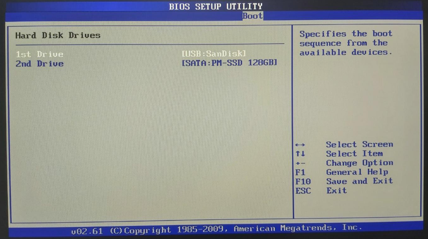 4. 1st Drive 를 USB로 바꿔줍니다.